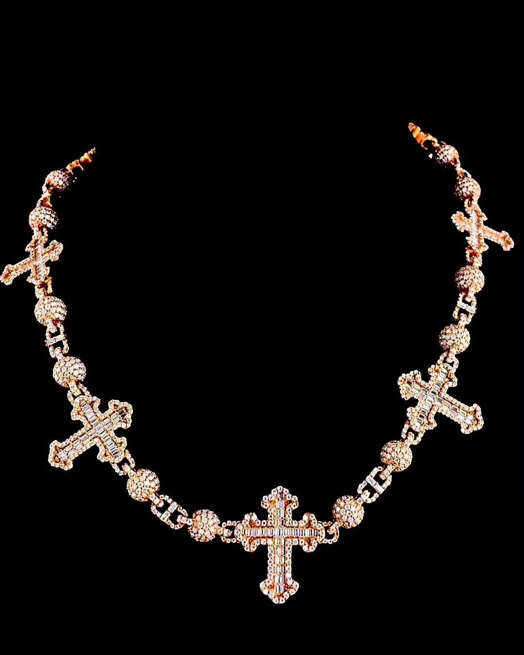 Add a touch of divine elegance to your style with this Luxury Gold Cross Necklace, expertly crafted for those who value sophistication and faith. Each link in this stunning piece features sparkling diamond-encrusted crosses connected by brilliant round beads, creating a radiant and timeless design.