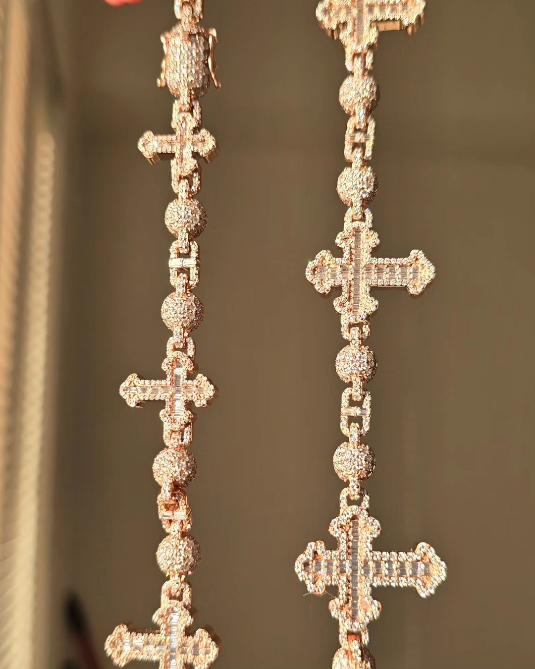 Add a touch of brilliance to your style with this Luxury Rose Gold Cross Link Bracelet, crafted for those who appreciate elegance and shine. Each cross and round link is fully encrusted with high-quality zircon stones, giving the bracelet a radiant, diamond-like sparkle that catches the light beautifully.